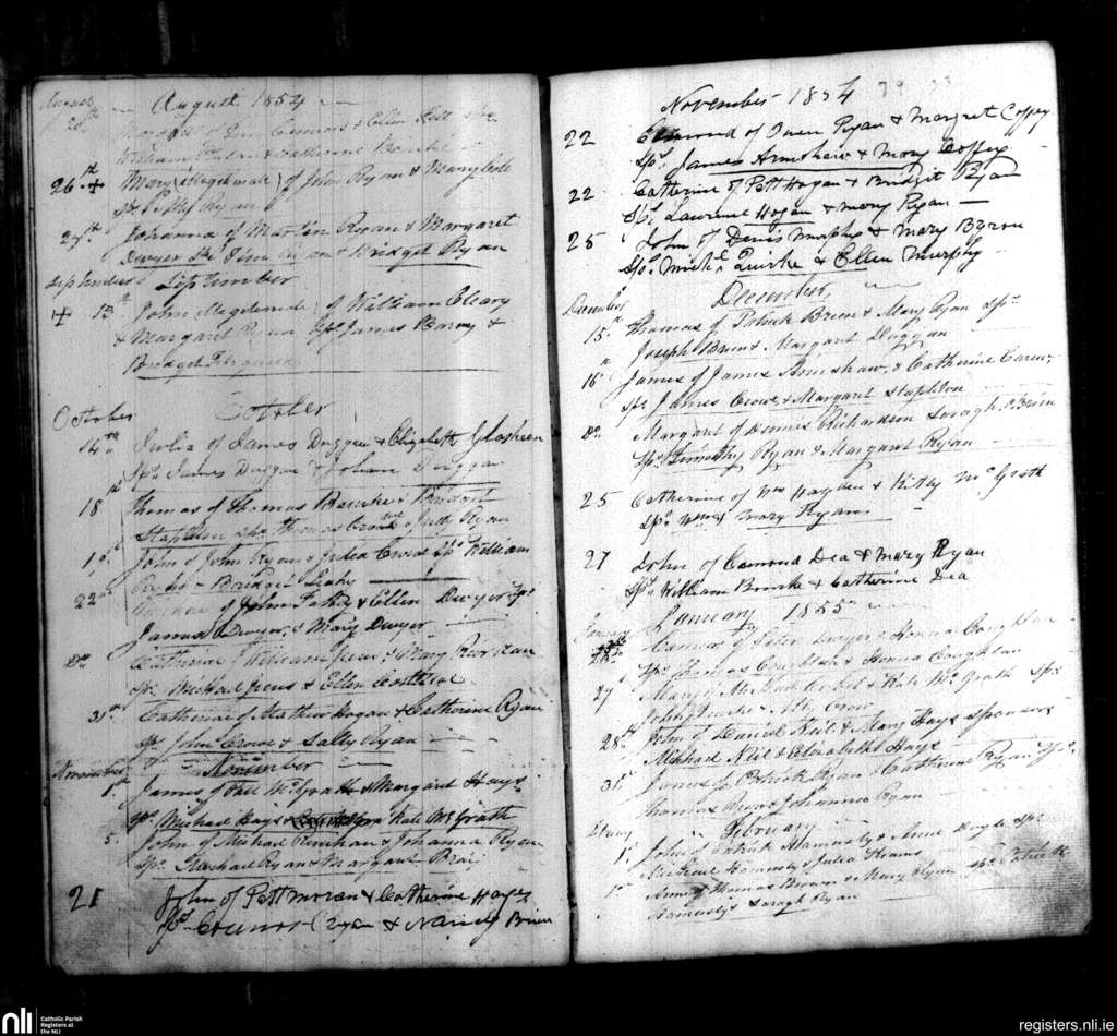Cappawhite; County of Tipperary; Diocese of Cashel and Emly. Baptisms, Aug. 1854 to Feb. 1855
