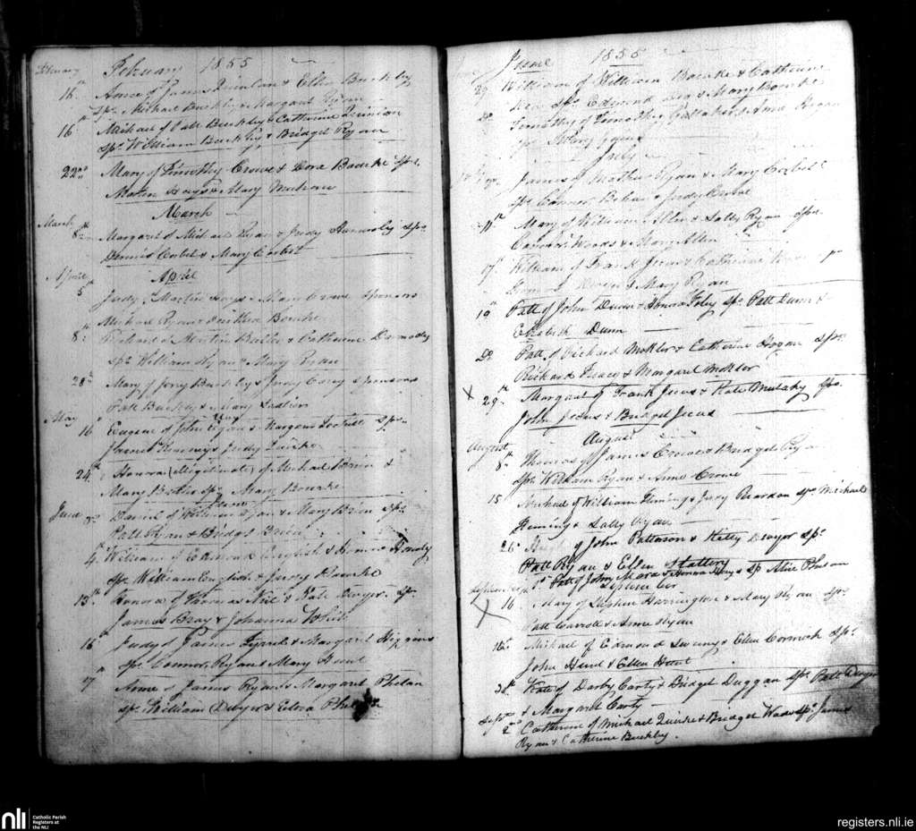 Cappawhite; County of Tipperary; Diocese of Cashel and Emly. Baptisms, Feb. 1855 to Sep. 1855