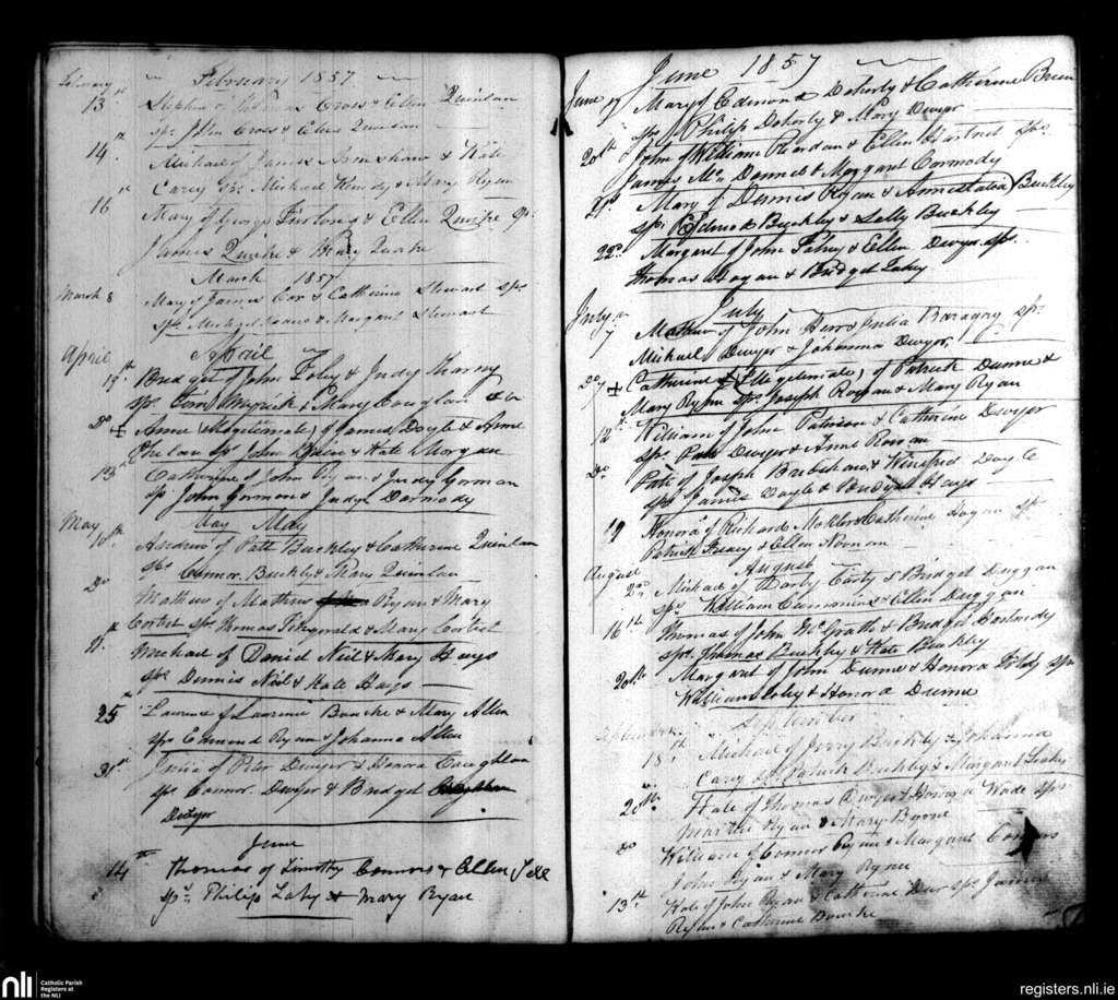 Cappawhite; County of Tipperary; Diocese of Cashel and Emly. Baptisms, Feb. 1857 to Sep. 1857