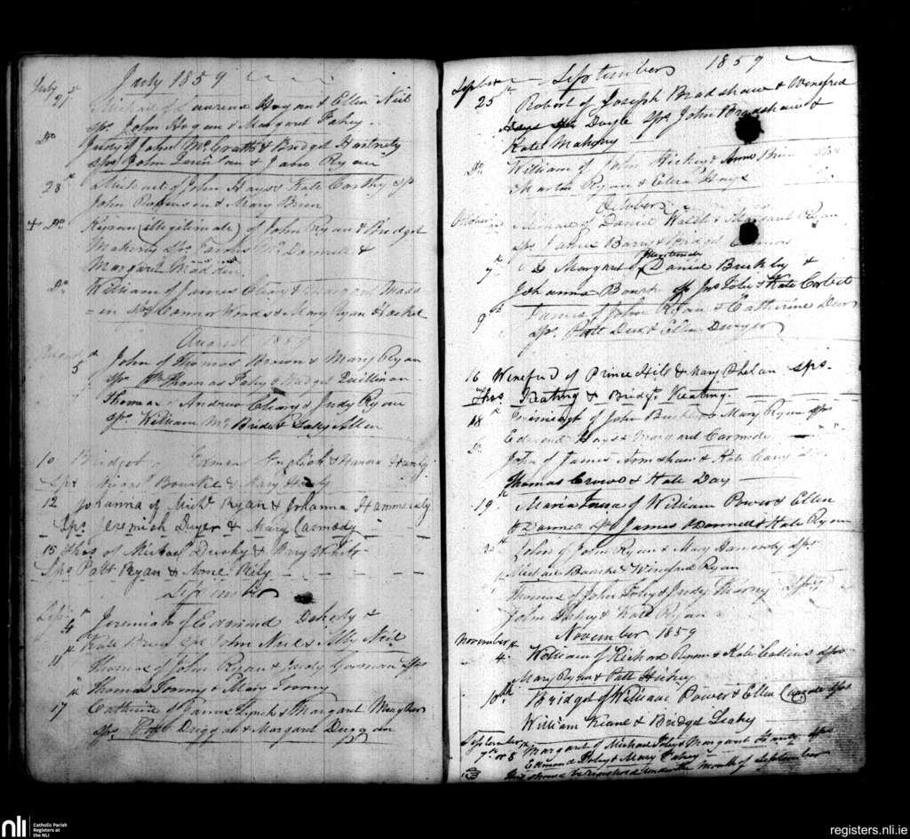 Cappawhite; County of Tipperary; Diocese of Cashel and Emly. Baptisms, July 1859 to Nov. 1859