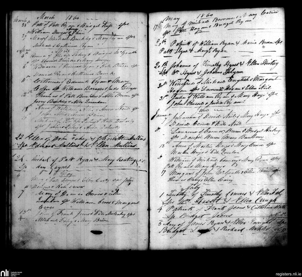 Cappawhite; County of Tipperary; Diocese of Cashel and Emly. Baptisms, Mar. 1860 to July 1860