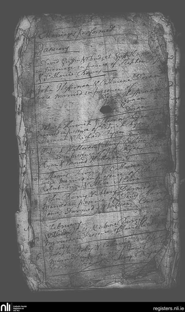 Cashel; County of Tipperary; Diocese of Cashel and Emly. Marriages, Jan. 1793 to Feb. 1793