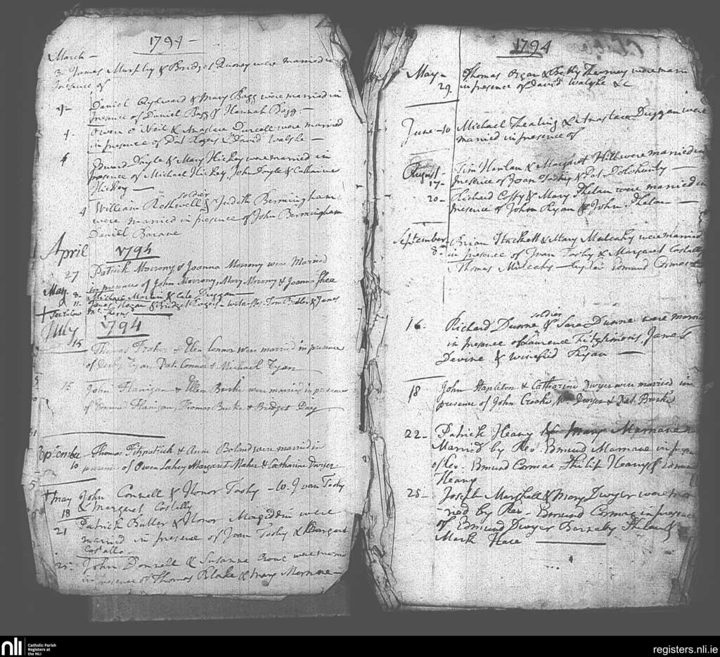 Cashel; County of Tipperary; Diocese of Cashel and Emly. Marriages, Mar. 1794 to Sep. 1794