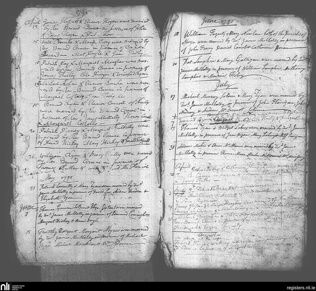 Cashel; County of Tipperary; Diocese of Cashel and Emly. Marriages, Apr. 1795 to Aug. 1795