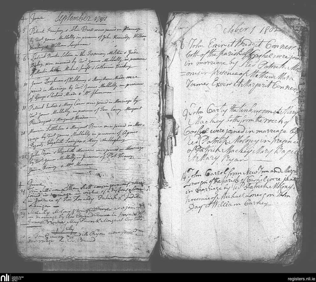 Cashel; County of Tipperary; Diocese of Cashel and Emly. Marriages, June 1797 to Oct. 1802