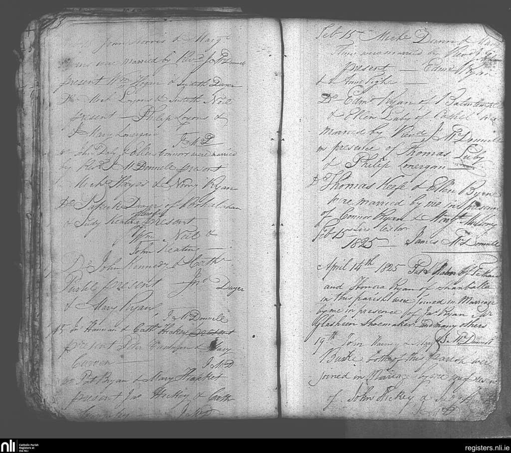 Cashel; County of Tipperary; Diocese of Cashel and Emly. Marriages, Feb. 1825 to Apr. 1825