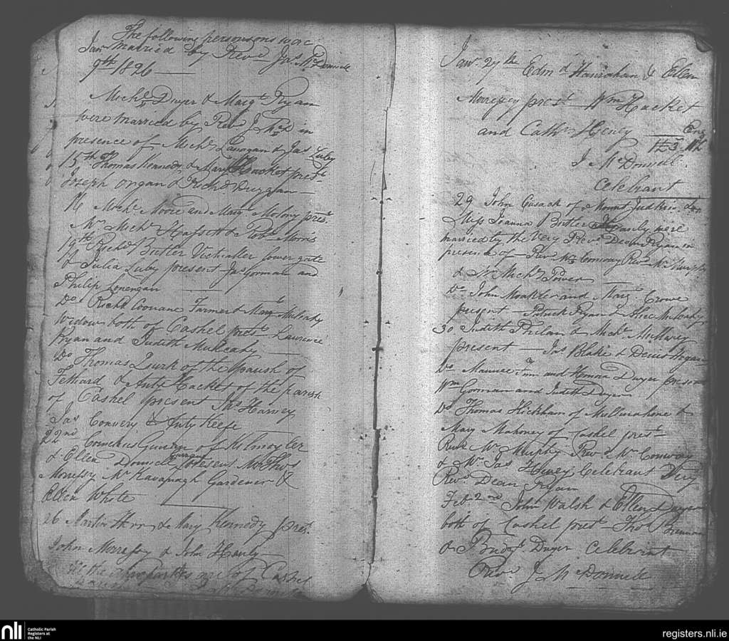 Cashel; County of Tipperary; Diocese of Cashel and Emly. Marriages, Jan. 1826 to Feb. 1826