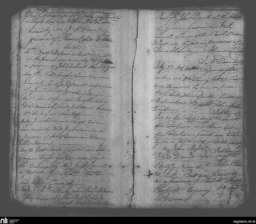 Cashel; County of Tipperary; Diocese of Cashel and Emly. Marriages, May 1826 to July 1826