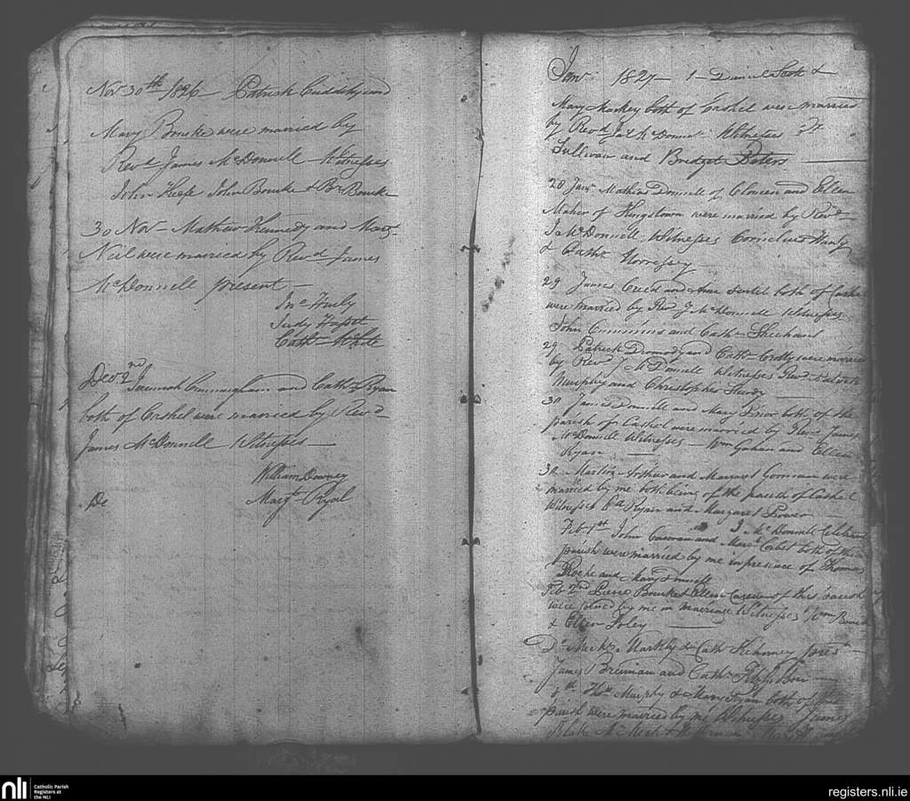 Cashel; County of Tipperary; Diocese of Cashel and Emly. Marriages, Nov. 1826 to Feb. 1827