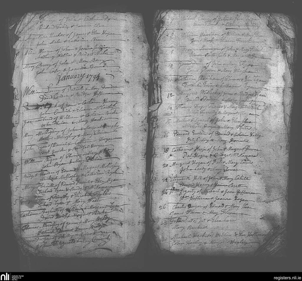 Cashel; County of Tipperary; Diocese of Cashel and Emly. Baptisms, Dec. 1793 to Jan. 1794