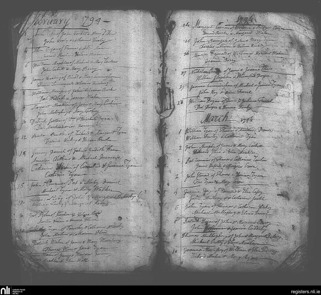 Cashel; County of Tipperary; Diocese of Cashel and Emly. Baptisms, Feb. 1794 to Mar. 1794
