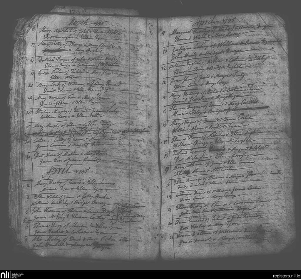 Cashel; County of Tipperary; Diocese of Cashel and Emly. Baptisms, Mar. 1795 to Apr. 1795