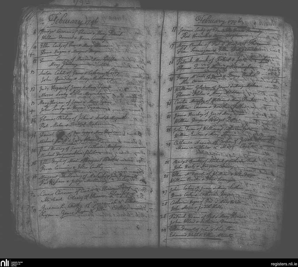 Cashel; County of Tipperary; Diocese of Cashel and Emly. Baptisms, Feb. 1796
