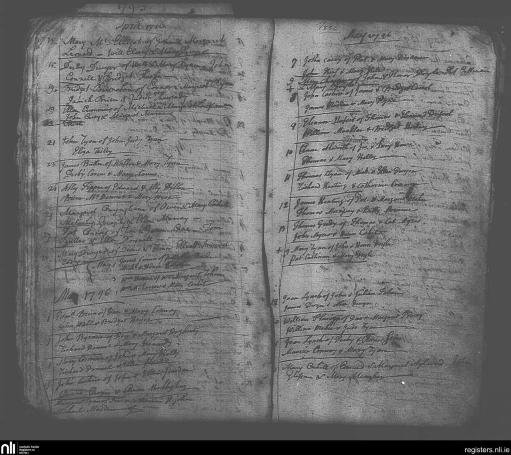 Cashel; County of Tipperary; Diocese of Cashel and Emly. Baptisms, Apr. 1796 to May 1796