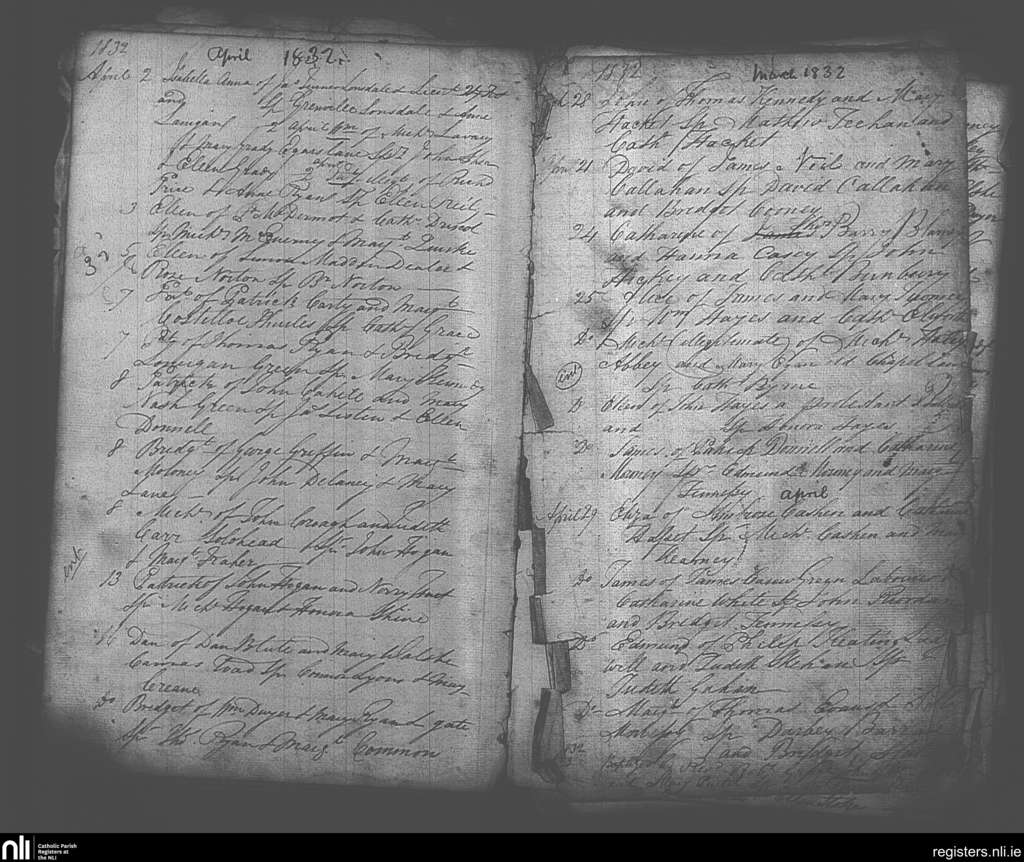 Cashel; County of Tipperary; Diocese of Cashel and Emly. Baptisms, Mar. 1832 to Apr. 1832
