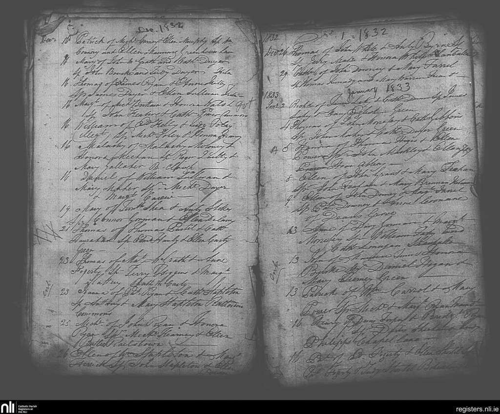 Cashel; County of Tipperary; Diocese of Cashel and Emly. Baptisms, Dec. 1832 to Jan. 1833