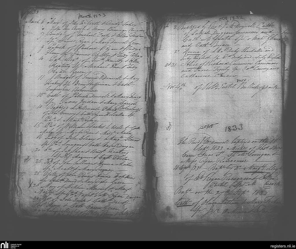 Cashel; County of Tipperary; Diocese of Cashel and Emly. Baptisms, Oct. 1832 to Sep. 1833