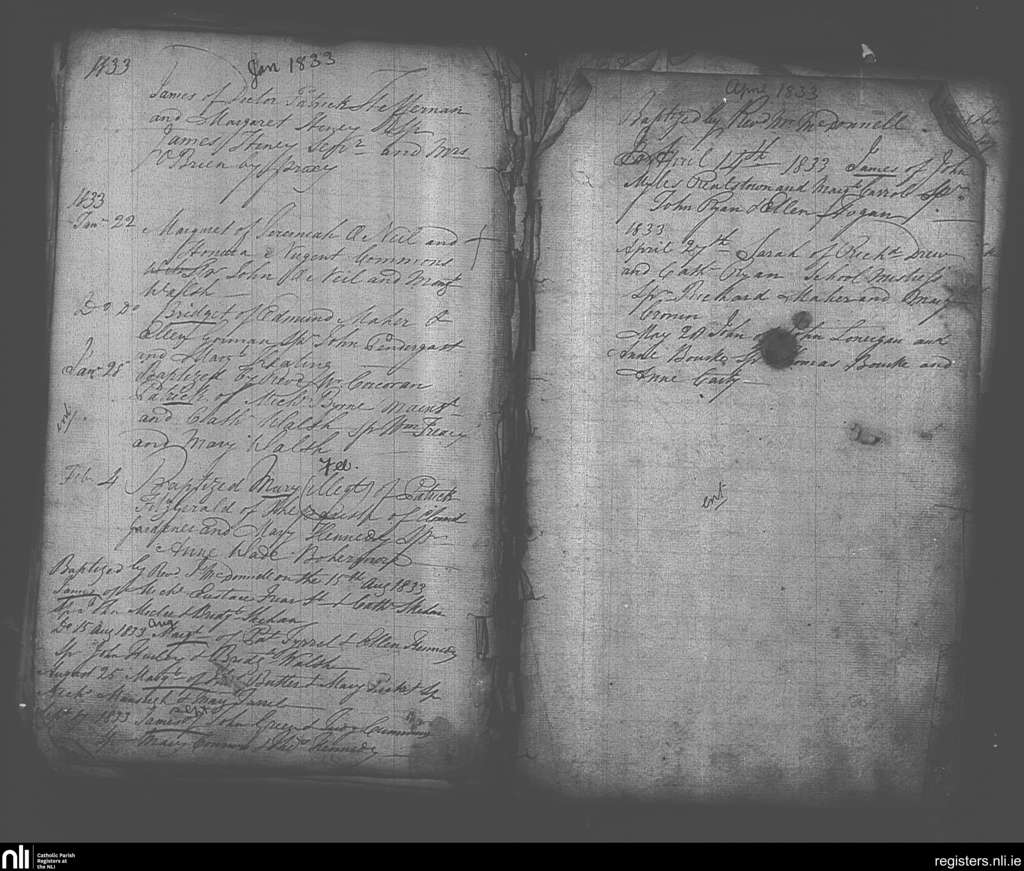 Cashel; County of Tipperary; Diocese of Cashel and Emly. Baptisms, Jan. 1833 to Sep. 1833
