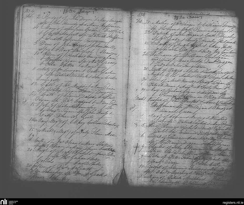 Cashel; County of Tipperary; Diocese of Cashel and Emly. Baptisms, Feb. 1834 to Mar. 1834