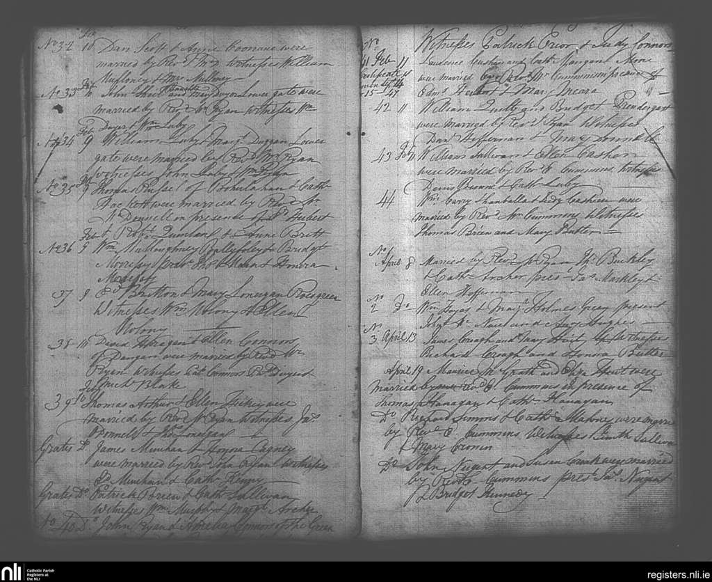 Cashel; County of Tipperary; Diocese of Cashel and Emly. Marriages, Feb. 1834 to Apr. 1834