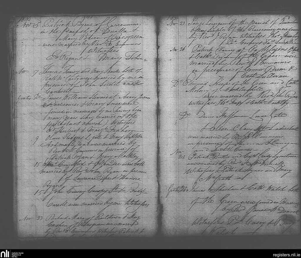 Cashel; County of Tipperary; Diocese of Cashel and Emly. Marriages, Nov. 1835