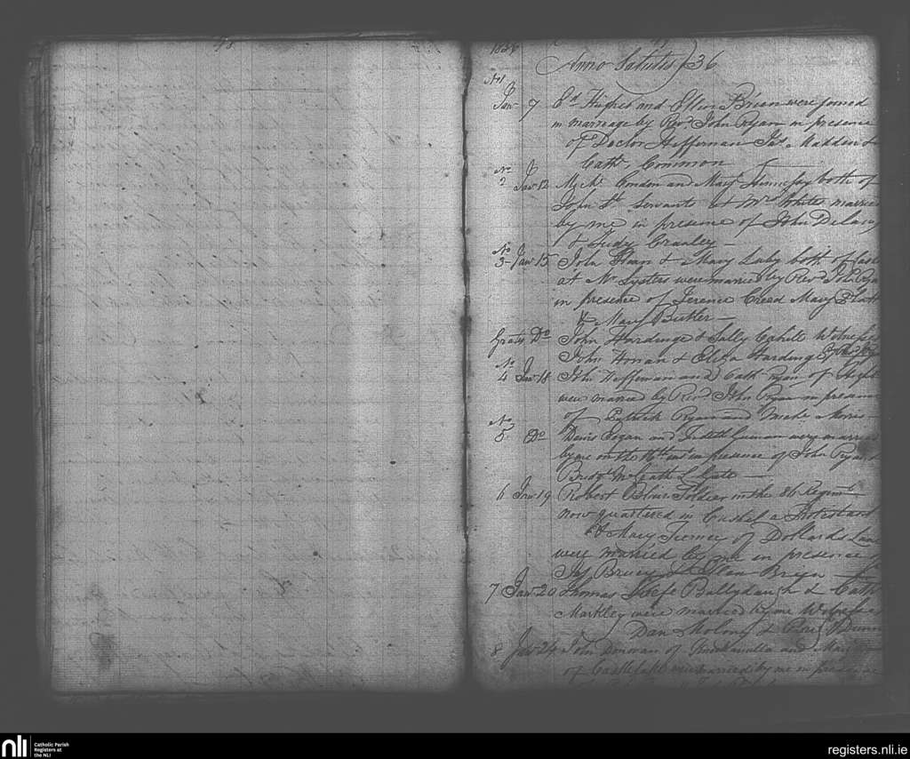 Cashel; County of Tipperary; Diocese of Cashel and Emly. Marriages, Jan. 1836