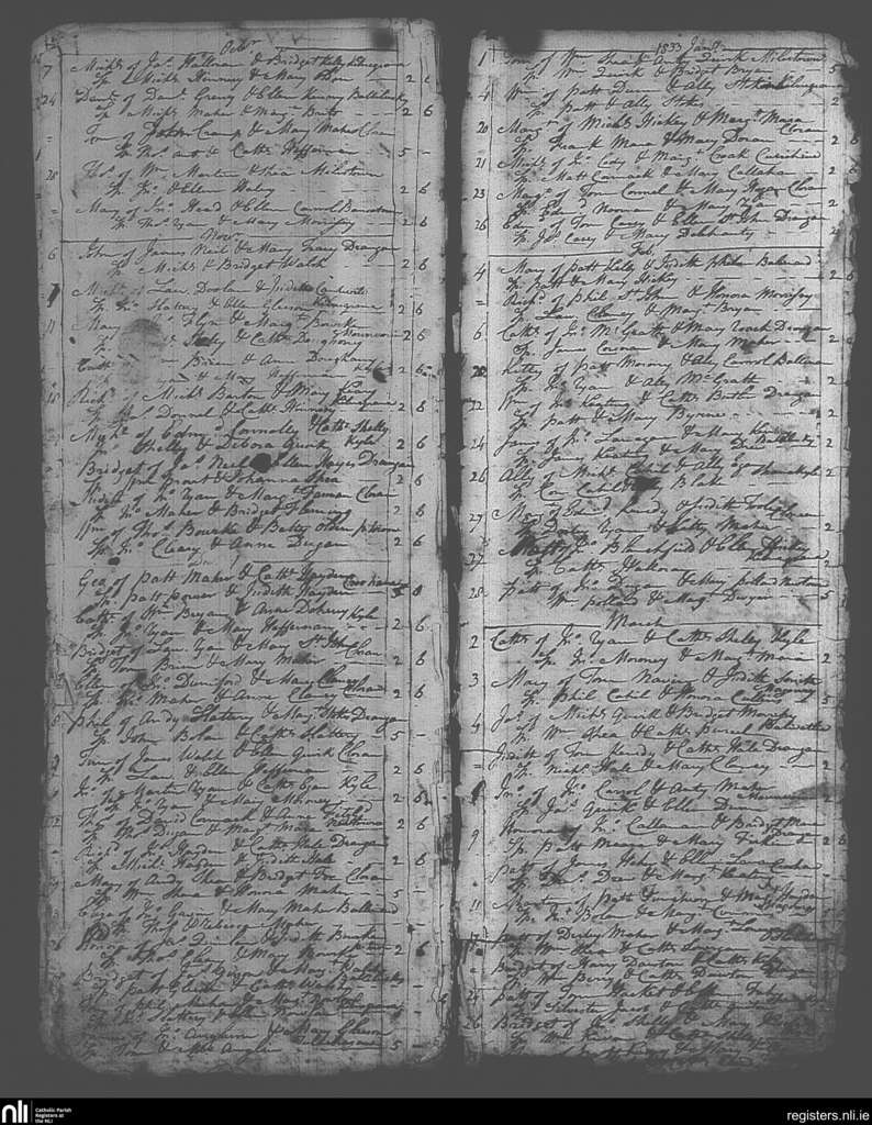 Drangan; County of Tipperary; Diocese of Cashel and Emly. Baptisms, Oct. 1832 to Mar. 1833