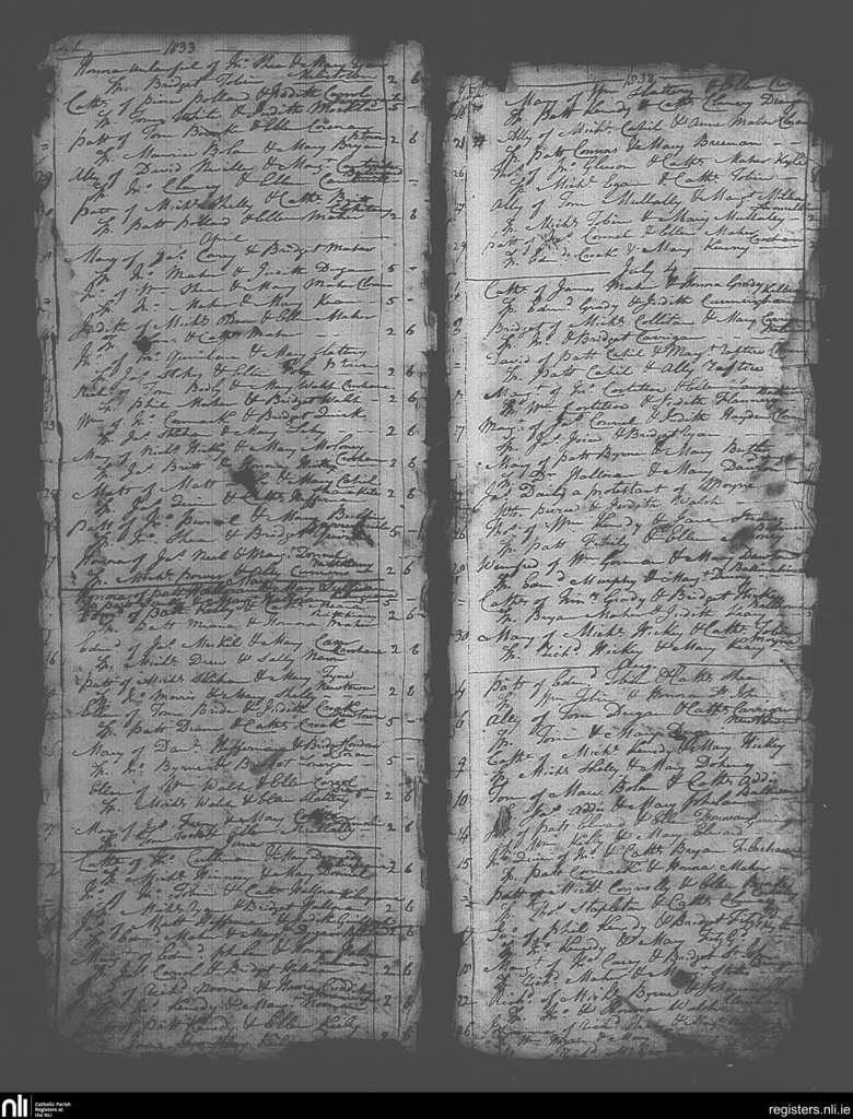 Drangan; County of Tipperary; Diocese of Cashel and Emly. Baptisms, Mar. 1833 to Aug. 1833
