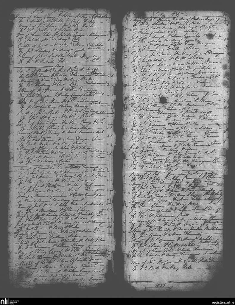 Drangan; County of Tipperary; Diocese of Cashel and Emly. Baptisms, July 1834 to Jan. 1835