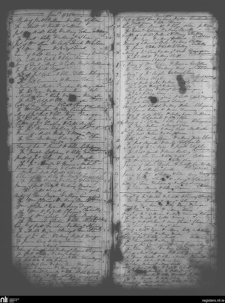 Drangan; County of Tipperary; Diocese of Cashel and Emly. Baptisms, Jan. 1835 to May 1835
