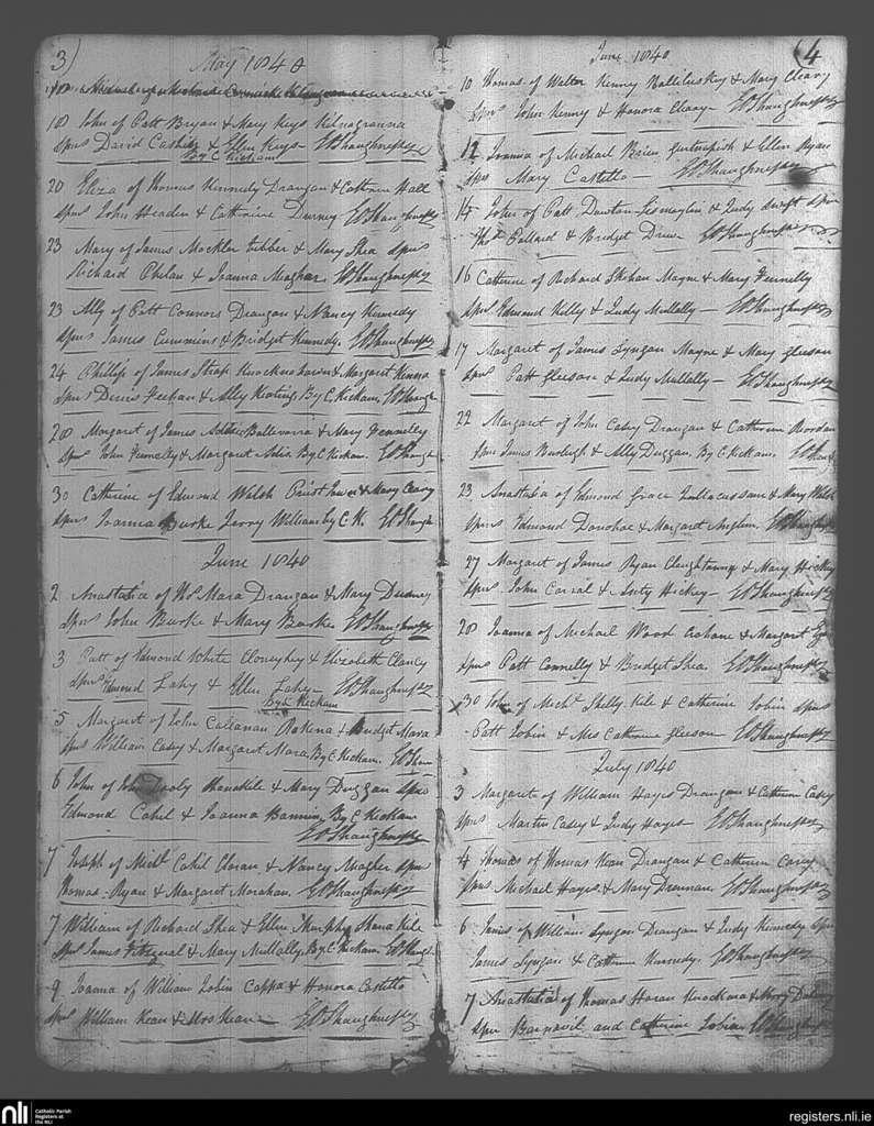 Drangan; County of Tipperary; Diocese of Cashel and Emly. Baptisms, May 1840 to July 1840