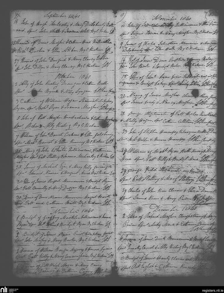 Drangan; County of Tipperary; Diocese of Cashel and Emly. Baptisms, Sep. 1840 to Dec. 1840