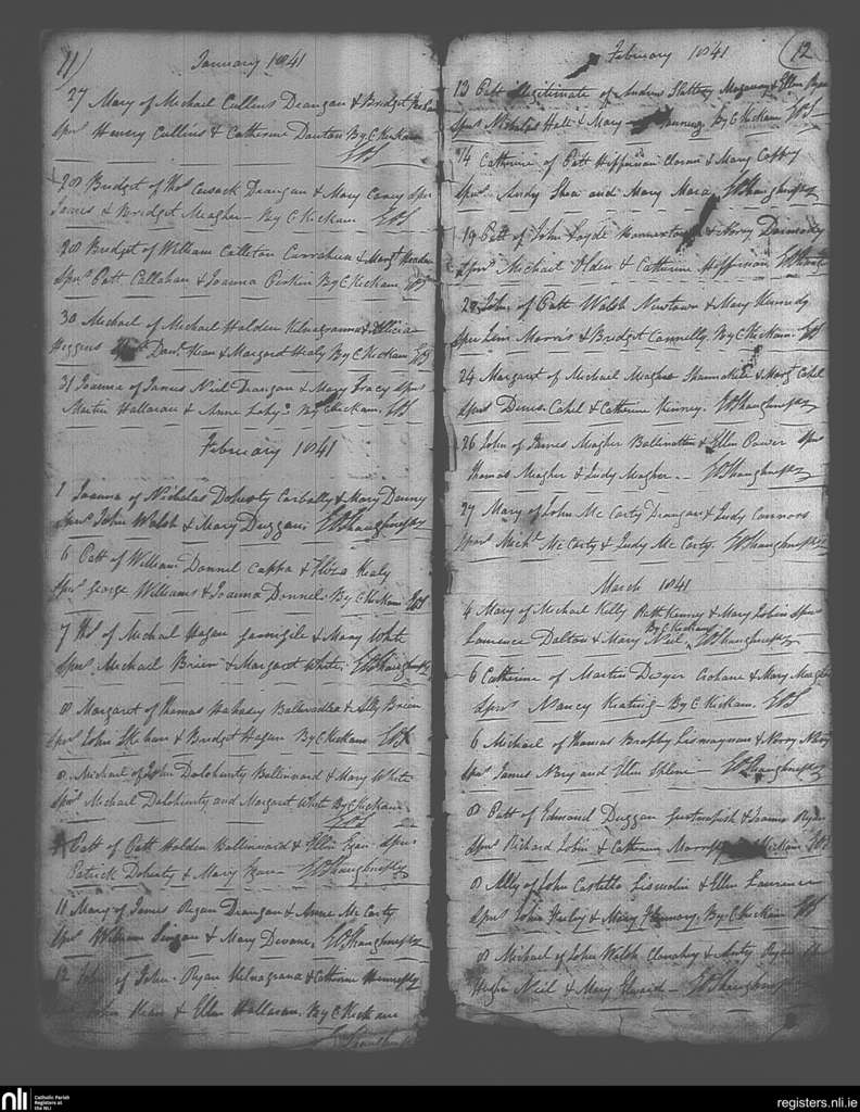 Drangan; County of Tipperary; Diocese of Cashel and Emly. Baptisms, Jan. 1841 to Mar. 1841