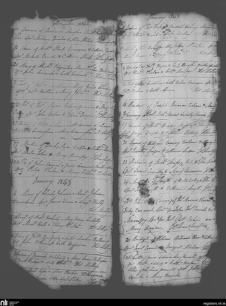 Drangan; County of Tipperary; Diocese of Cashel and Emly. Baptisms, Dec. 1842 to Jan. 1843