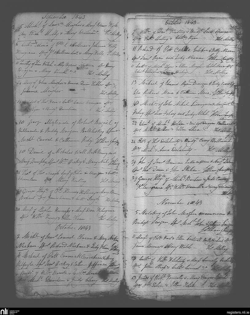 Drangan; County of Tipperary; Diocese of Cashel and Emly. Baptisms, Sep. 1843 to Nov. 1843