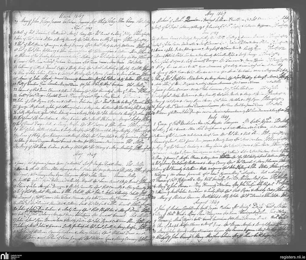 Drangan; County of Tipperary; Diocese of Cashel and Emly. Baptisms, Mar. 1849 to Aug. 1849