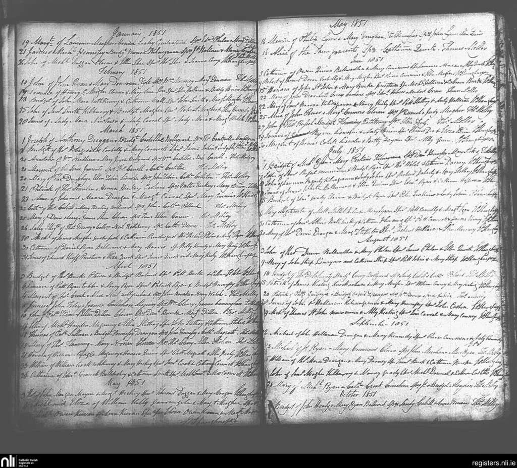 Drangan; County of Tipperary; Diocese of Cashel and Emly. Baptisms, Jan. 1851 to Oct. 1851