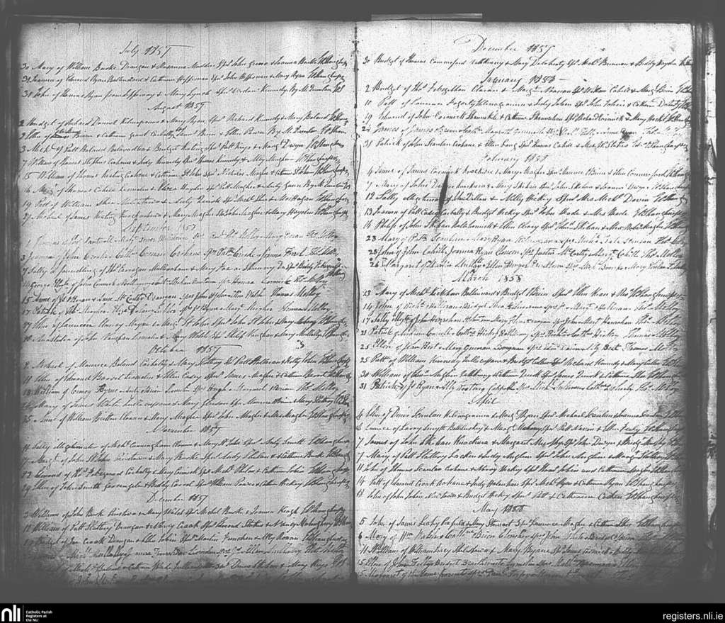 Drangan; County of Tipperary; Diocese of Cashel and Emly. Baptisms, July 1857 to May 1858