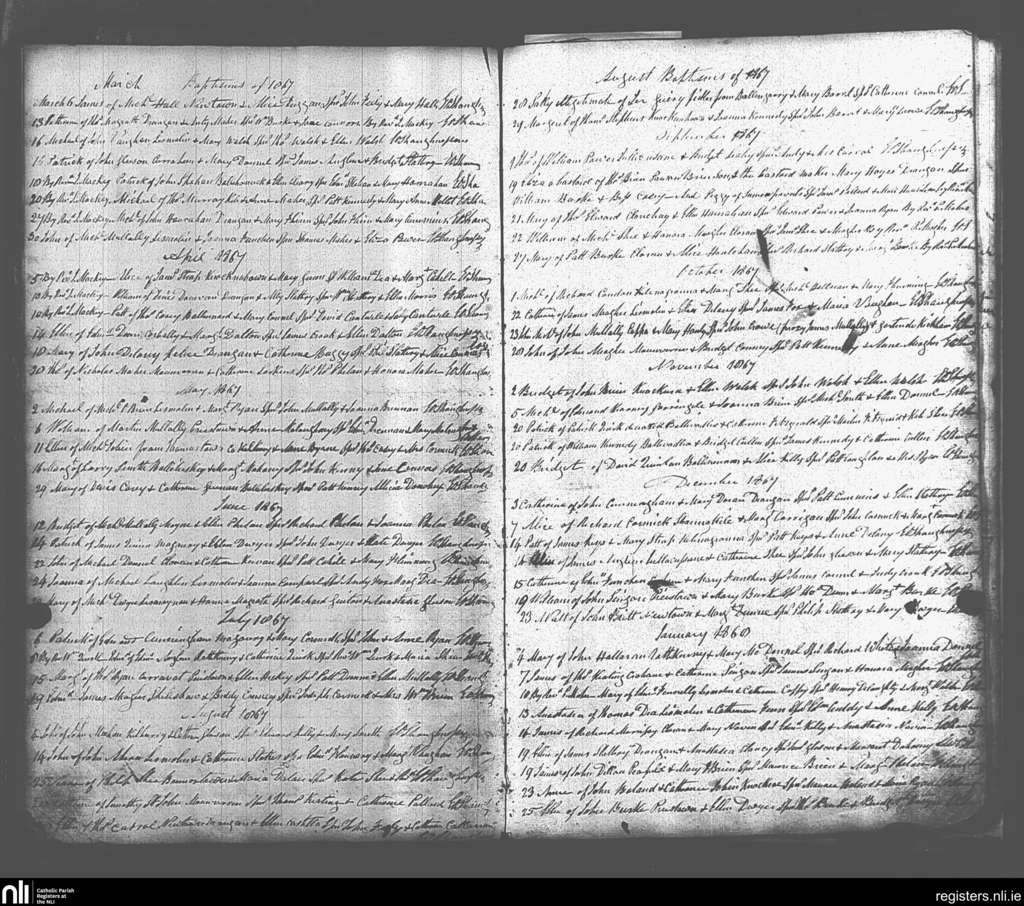 Drangan; County of Tipperary; Diocese of Cashel and Emly. Baptisms, Mar. 1867 to Jan. 1868