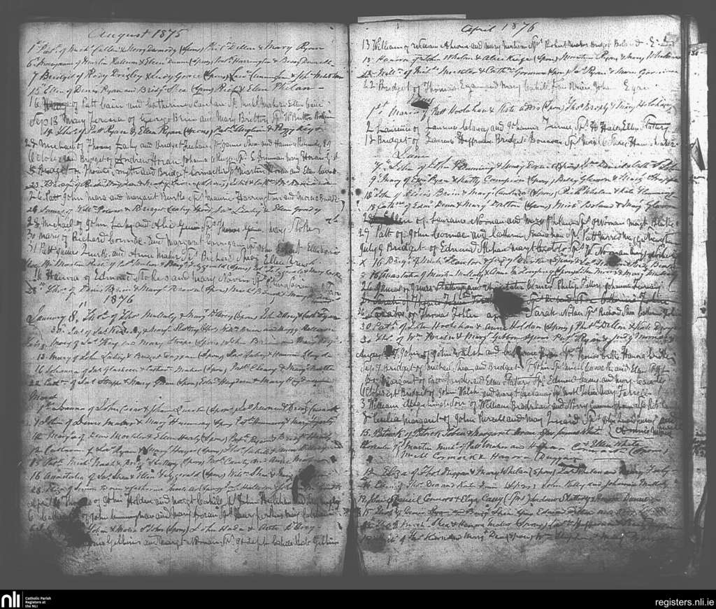 Drangan; County of Tipperary; Diocese of Cashel and Emly. Baptisms, Aug. 1875 to Aug. 1876