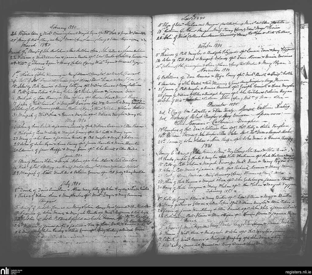 Drangan; County of Tipperary; Diocese of Cashel and Emly. Baptisms, Feb. 1880 to Mar. 1881