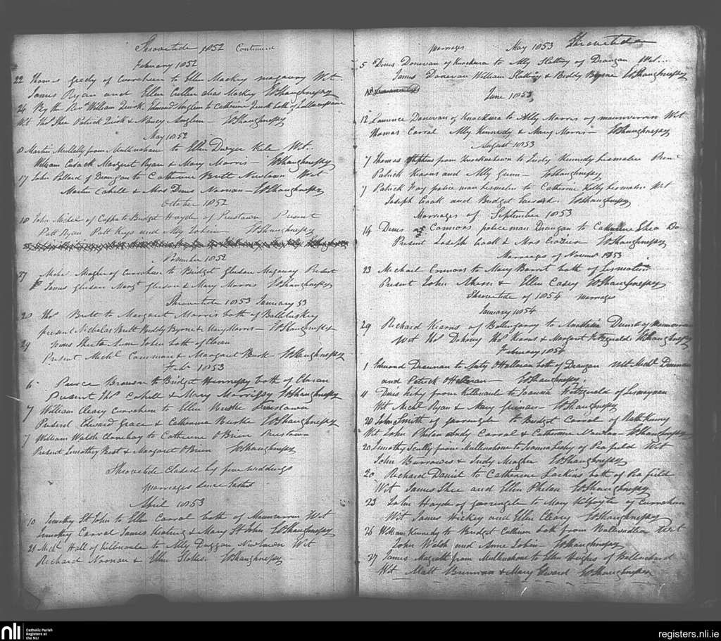 Drangan; County of Tipperary; Diocese of Cashel and Emly. Marriages, Feb. 1852 to Feb. 1854