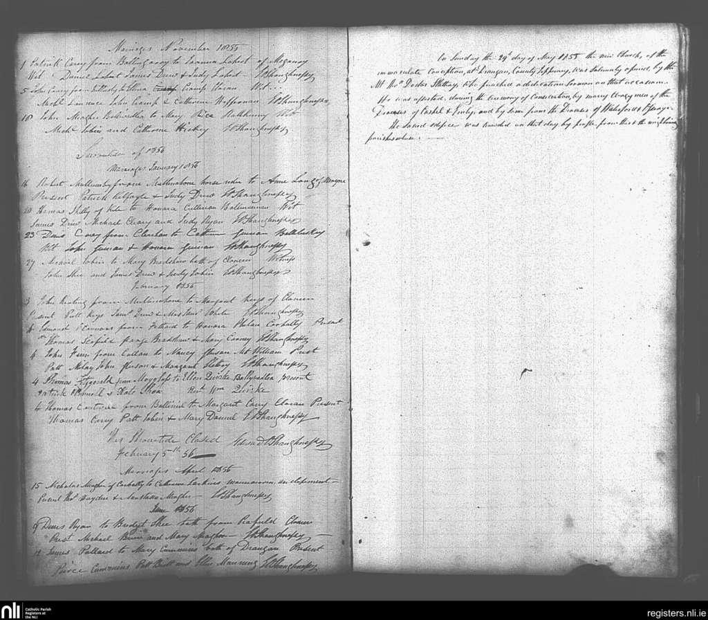 Drangan; County of Tipperary; Diocese of Cashel and Emly. Marriages, Nov. 1855 to June 1856