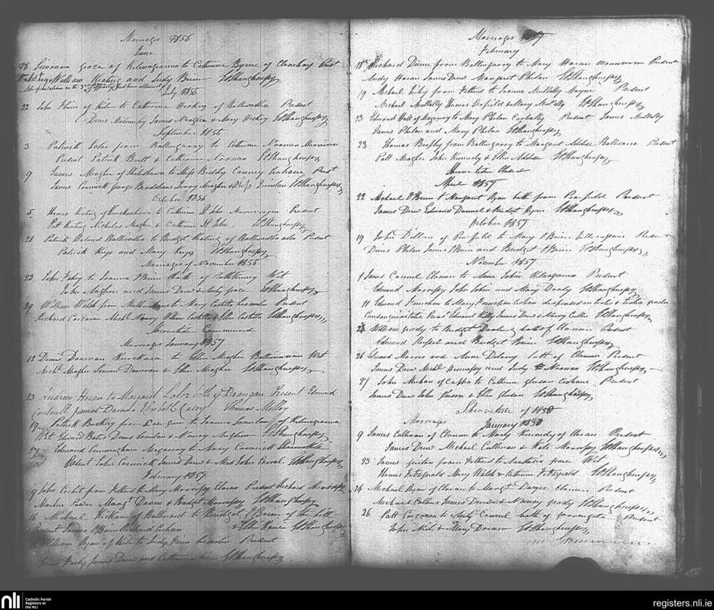 Drangan; County of Tipperary; Diocese of Cashel and Emly. Marriages, June 1856 to Jan. 1858