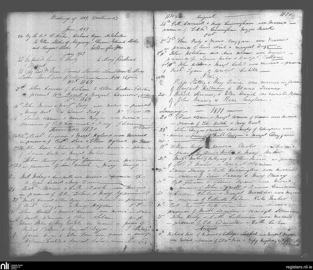 Drangan; County of Tipperary; Diocese of Cashel and Emly. Marriages, June 1869 to Aug. 1871