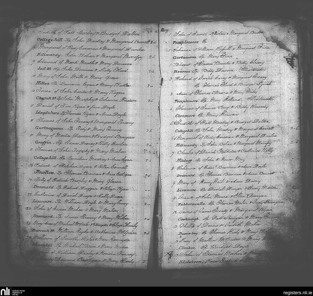 Templemore; County of Tipperary; Diocese of Cashel and Emly. Baptisms, Apr. 1836 to May 1836