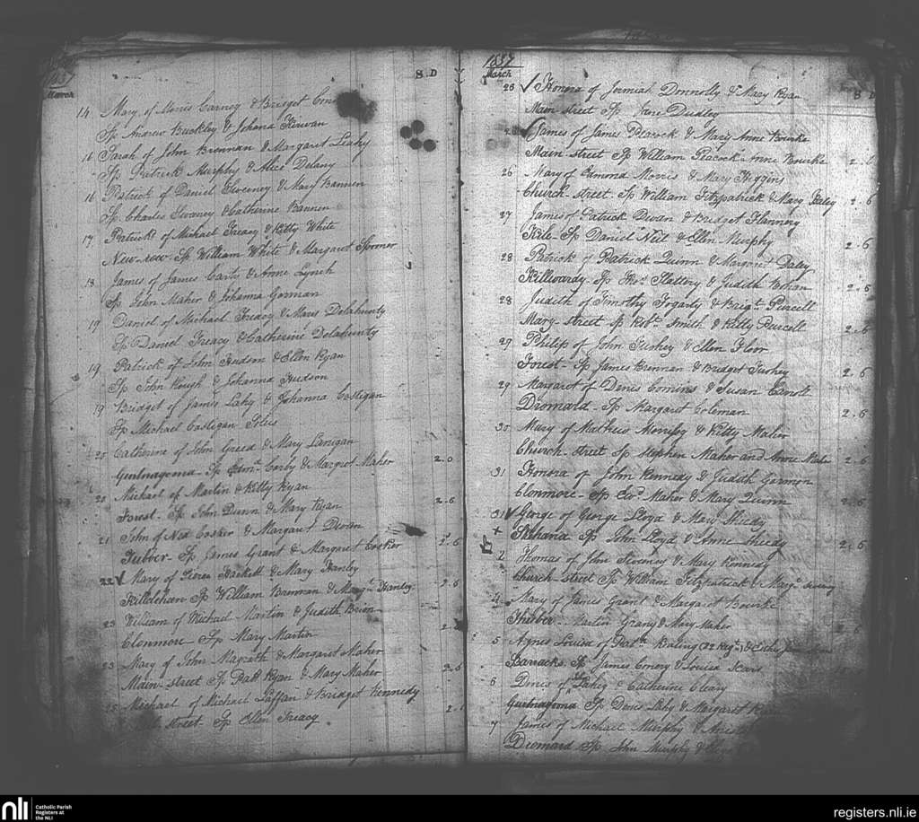 Templemore; County of Tipperary; Diocese of Cashel and Emly. Baptisms, Mar. 1837