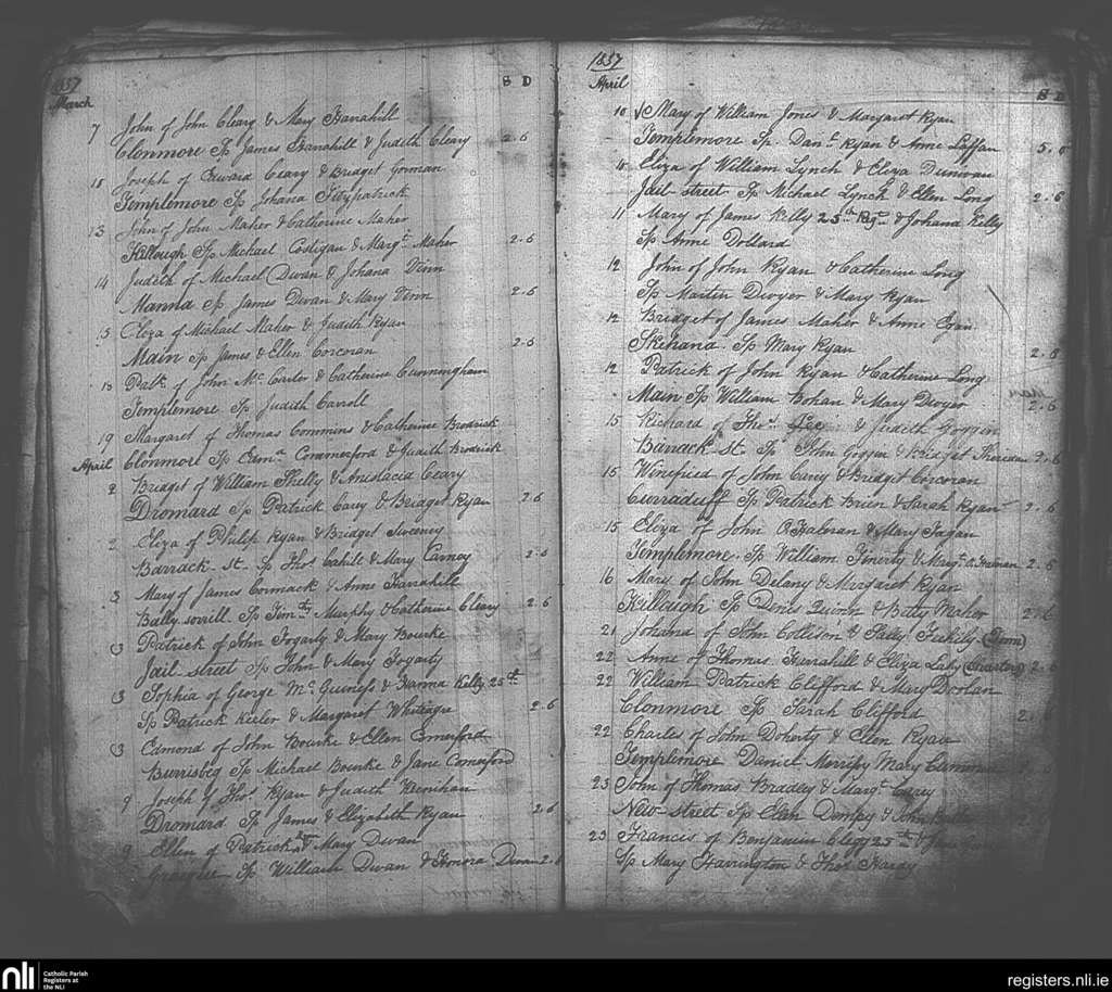 Templemore; County of Tipperary; Diocese of Cashel and Emly. Baptisms, Mar. 1837 to Apr. 1837
