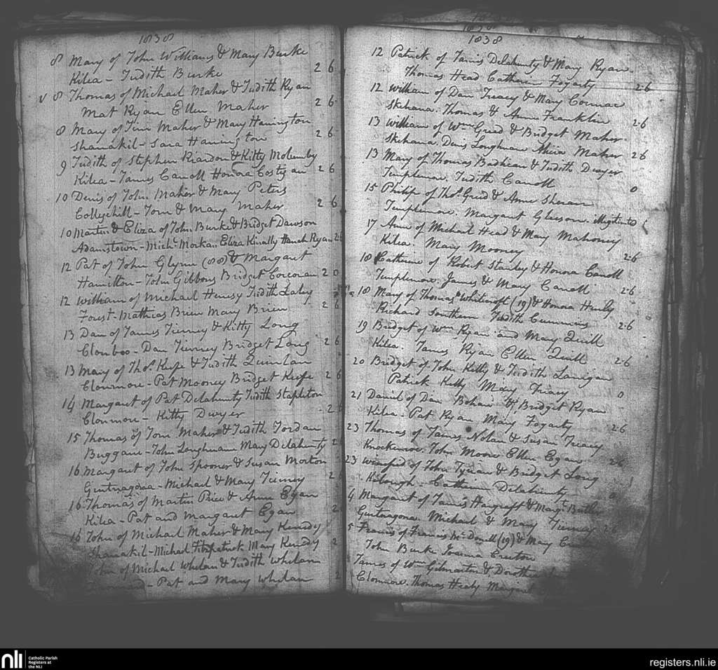 Templemore; County of Tipperary; Diocese of Cashel and Emly. Baptisms, Feb. 1838