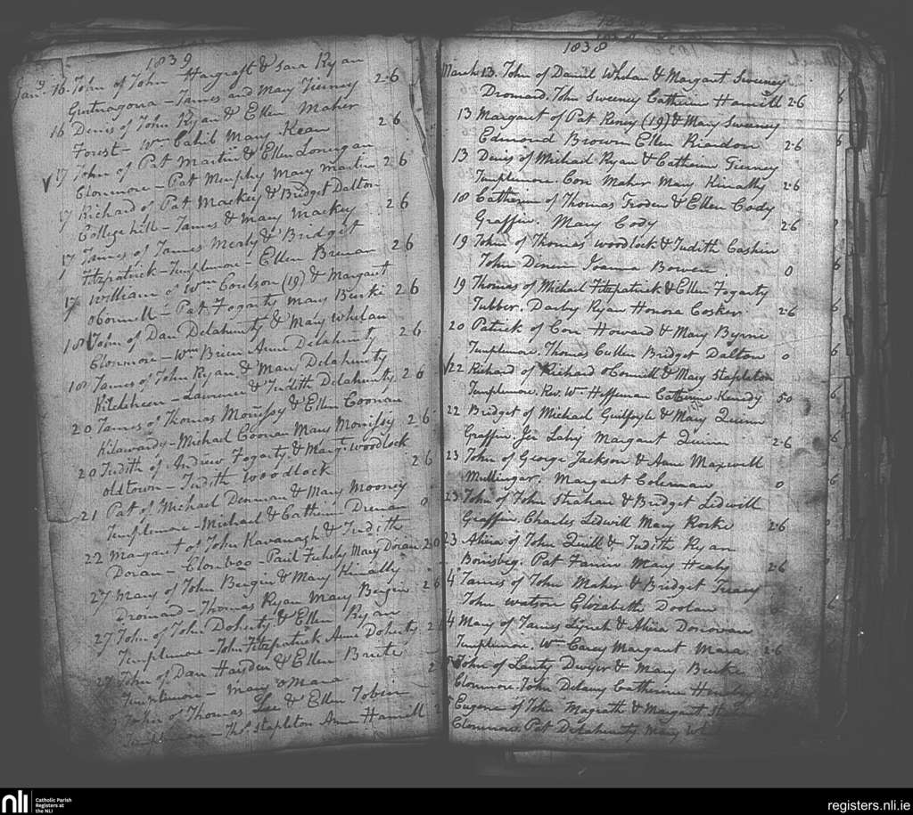 Templemore; County of Tipperary; Diocese of Cashel and Emly. Baptisms, Mar. 1838 to Jan. 1839
